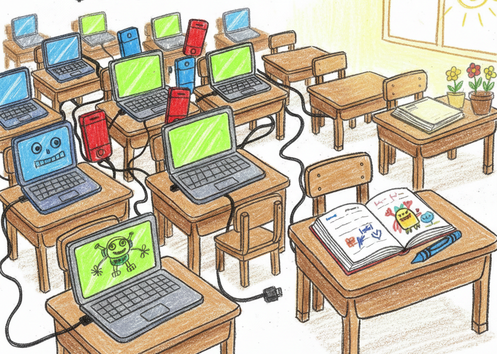 En mi colegio todos tienen una tablet. Menos yo, que me tengo que conformar con un cuaderno de tapas sobadas y un bolígrafo que se queda sin tinta en mitad de los dictados. Me da una rabia…